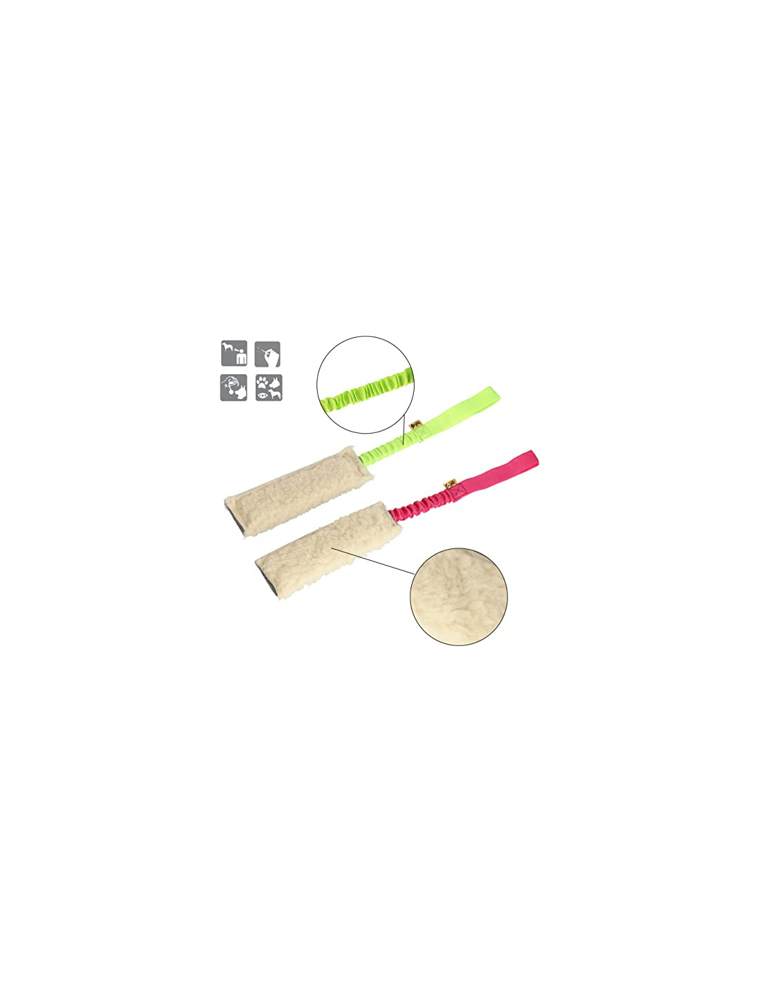 Beißwülste mit Griff Bungee ist aus Schafwolle gefertigt. Ideal zum Schleppen mit Ihrem Hund. Es wird sehr gut funktionieren, um zu lernen, wie man apportiert und beißt. Der gepolsterte Griff reduziert die starken Stöße des Hundes beim Spielen. Farbige Griffe:ermöglichen eine schnelle Identifizierung der Position des Spielzeugs Wir sind ein Familienunternehmen, das seit 1977 in der zoologischen Branche. Die Qualität unserer Produkte und der Material aus denen sie hergestellt werden, ist für uns von großer Bedeutung. In unserem Angebot haben wir Halsbänder, Leinen, Hosenträger, Maulkörbe und viele andere. Die Produkte sind umfasst komfortables und sicheres Zubehör das sich ideal zum Spielen und Trainieren mit Ihrem Hund eignet.